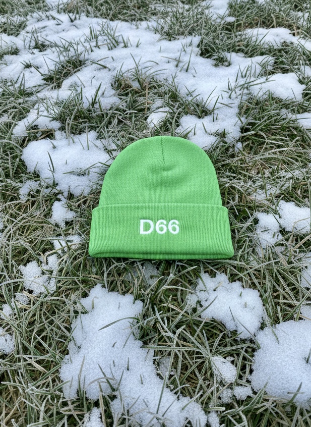 Zacht, warm en duidelijk D66. Deze muts houdt je hoofd warm én laat zien waar je voor staat. Perfect voor frisse dagen, campagne-momenten of gewoon onderweg. Draag ’m met trots en kleur de winter een beetje groener. 💚