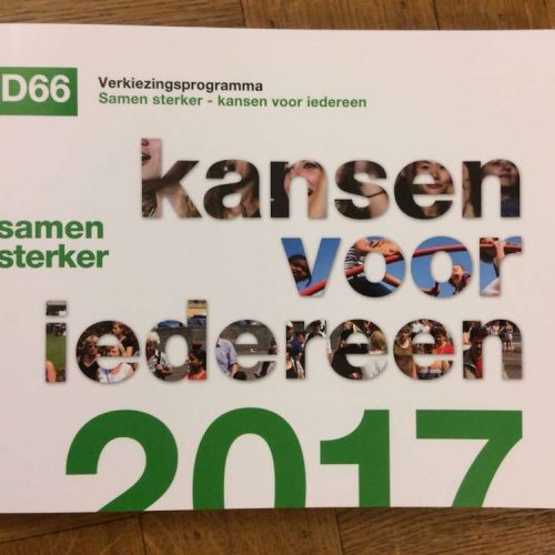Goed werk, goede zorg, goed onderwijs. D66 krijgt het voor elkaar. Samen werken we aan een Nederland waar iedereen zich vrij en thuis voelt. Met kansen voor iedereen. Hoe we dat precies gaan doen? Je leest het in ons verkiezingsprogramma ‘Samen sterker. Kansen voor iedereen’. Bestel hem hier, je betaalt alleen verzendkosten.